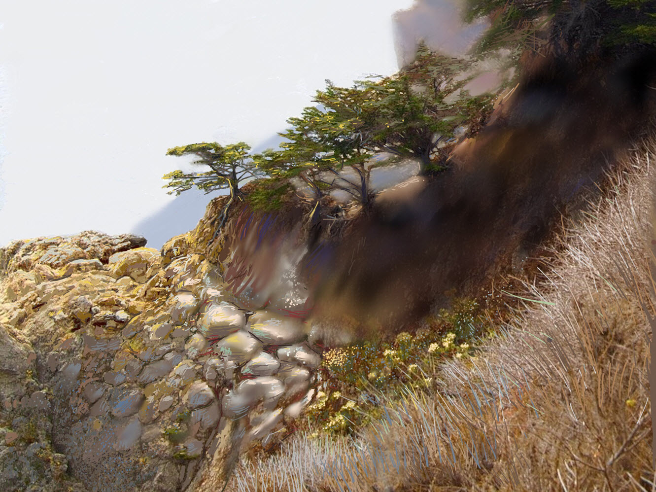 "View from Julia Pfeiffer Burns Estate, Big Sur, CA"  a 'Paper 53' Digital Painting by Professor Al Fichera, 1/22/2016