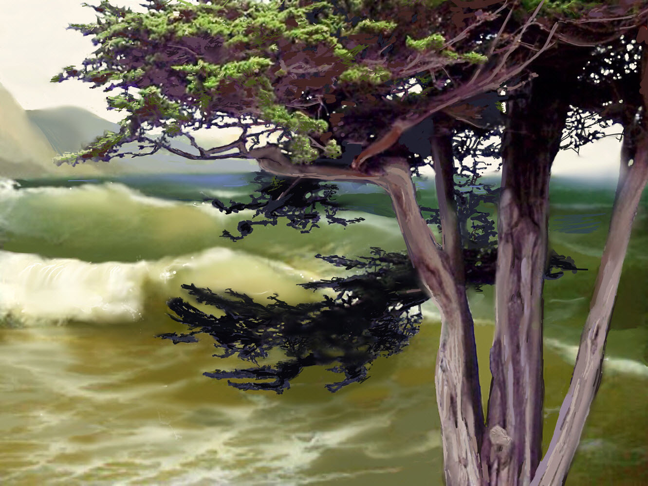"Lone Cyprus Tree at Monterey Coast, CA" a 'Paper 53' Digital Painting by Professor Al Fichera, 2/25/2016