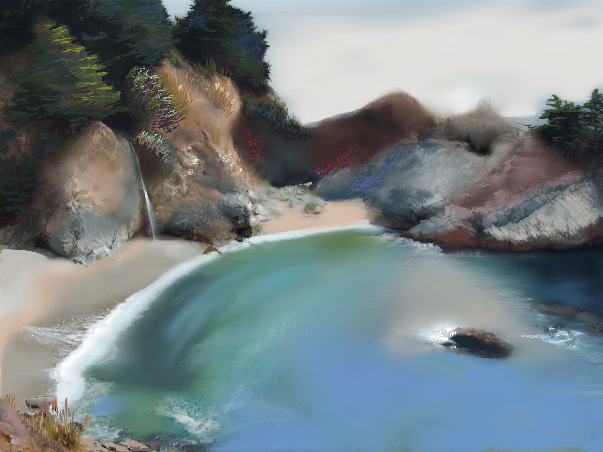 "Julia Pfeiffer Burns Beach and McWay Falls, Big Sur, CA" a 'Paper 53' Digital Painting by Professor Al Fichera, 1/15/2016